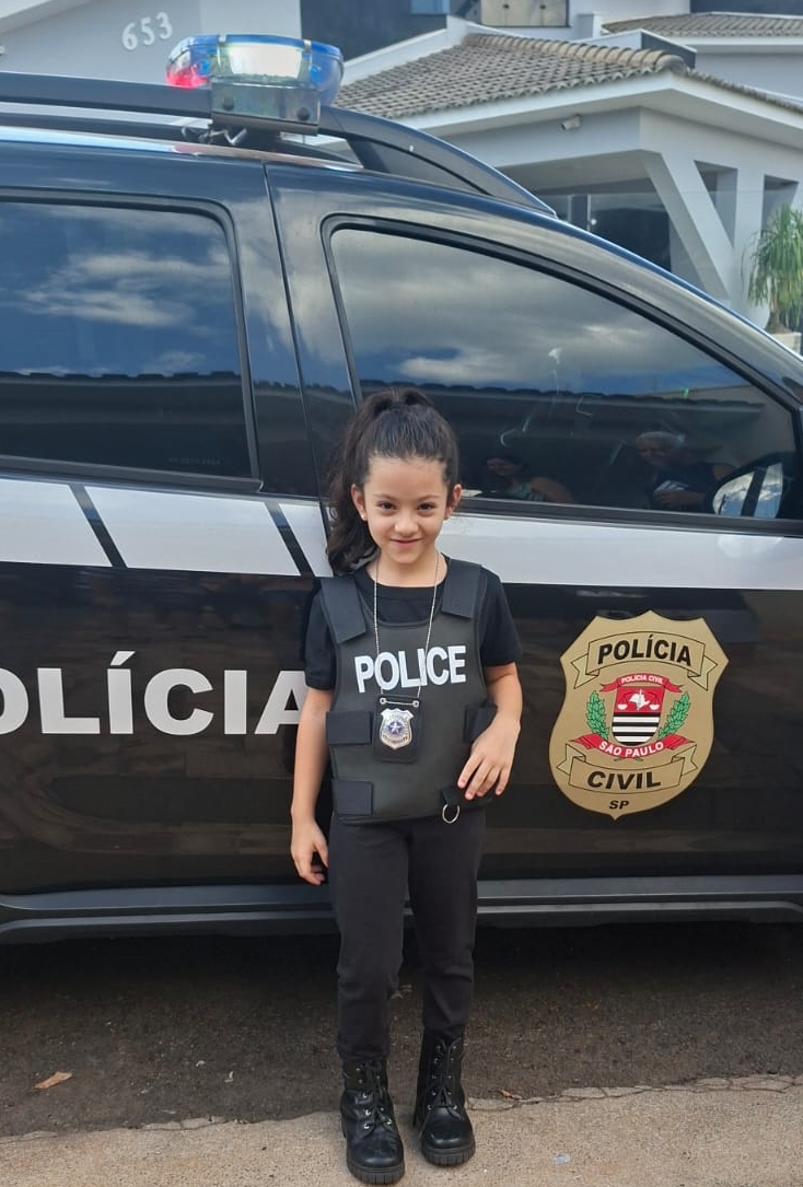 Durante a celebração, Luísa teve a oportunidade de conhecer de perto a viatura oficial da Polícia Civil, interagir e posar para fotos com os agentes.