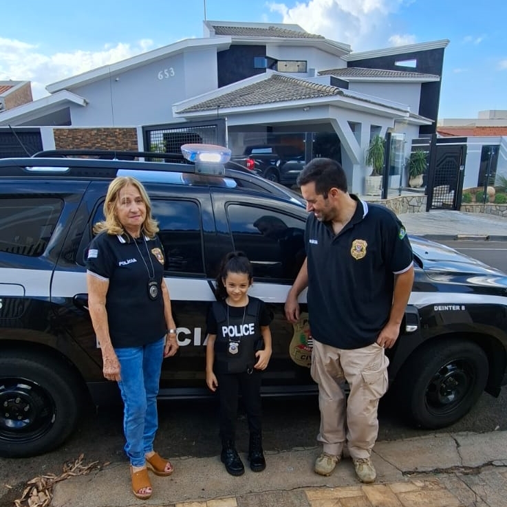 A Polícia Civil participou, neste sábado (25), da comemoração de aniversário da pequena Luísa Desiderio, que completou 7 anos de idade, no bairro Jardim Palmeira I, em Dracena (SP)